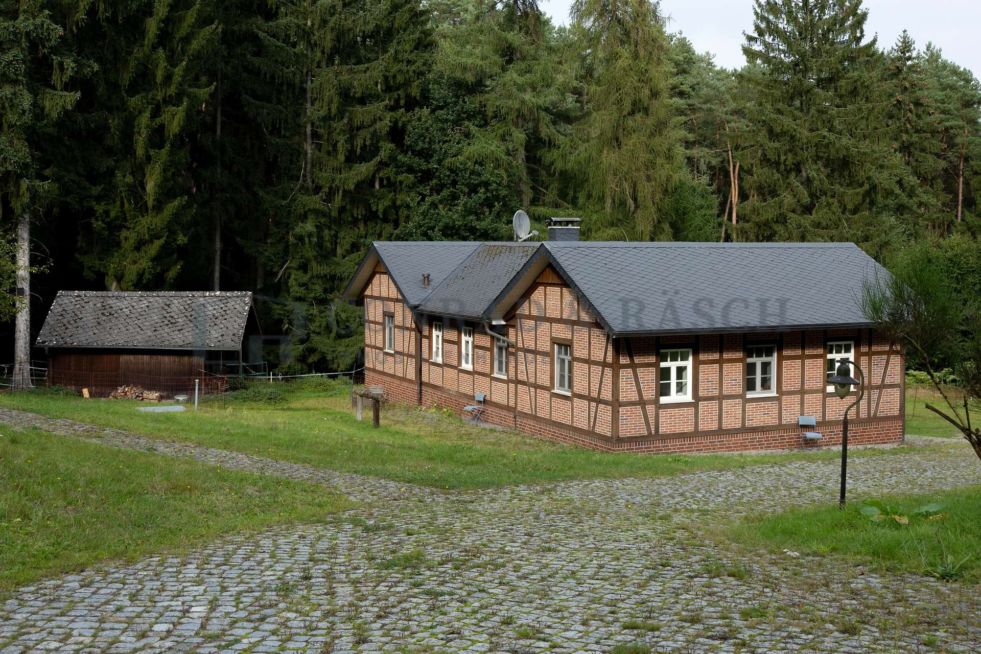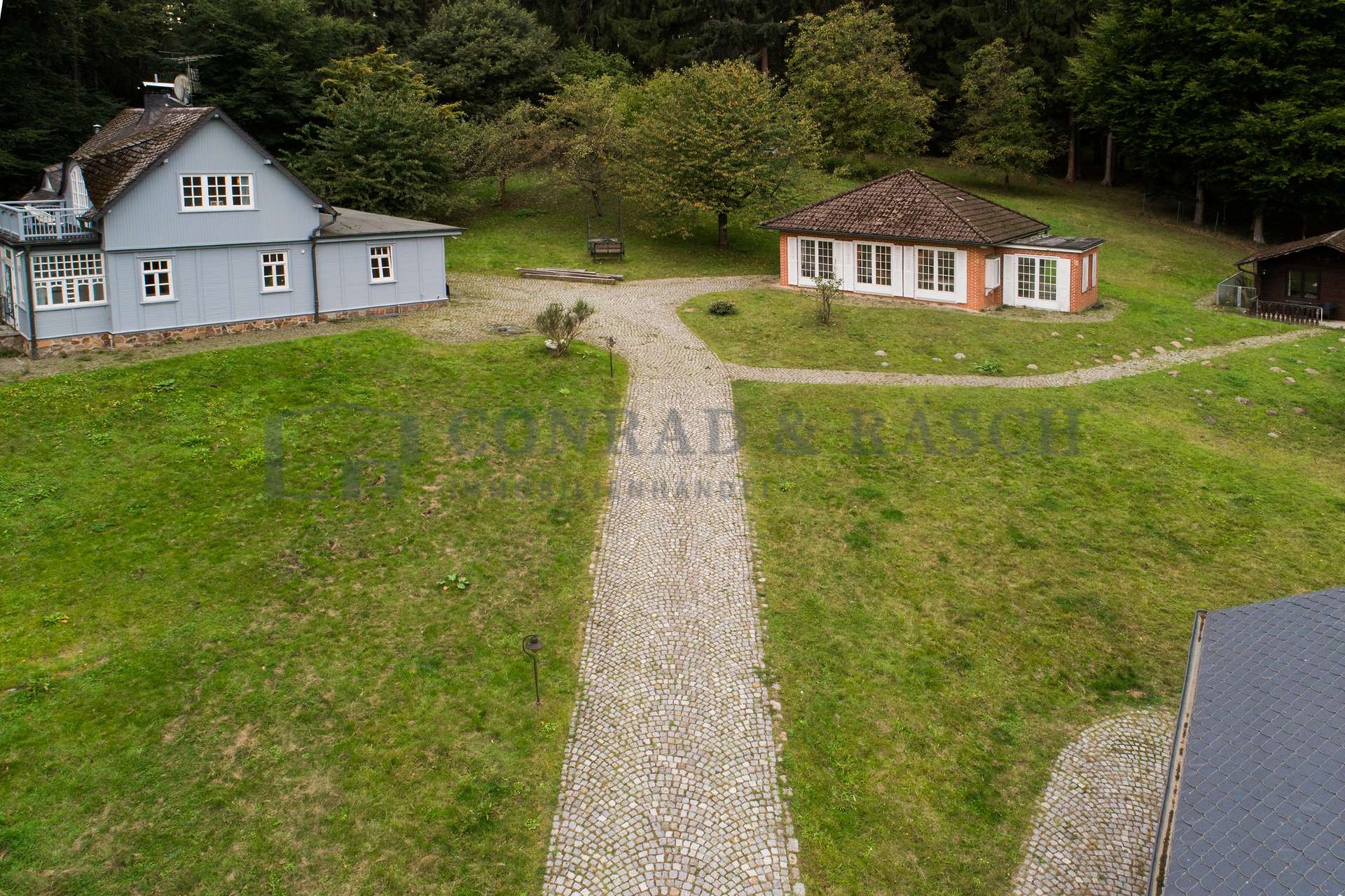 Dieses Anwesen ist eine wahre Rarität – eine Gelegenheit, die Sie nicht verpassen sollten! Auf einem beeindruckenden Grundstück von über 37.000 m², eingebettet in eine idyllische Lichtung mitten im Wald, erwartet Sie ein Lebensraum, der in dieser Form kaum zu finden ist. Das liebevoll gestaltete Holzhaus (Baujahr ca. 1920) mit seinen 4 hellen Zimmern bietet Ihnen ein behagliches Zuhause, während das stilvoll sanierte Fachwerk-Backsteinhaus (Baujahr ca. 1920, Wiederaufbau und Umbau  ca. 2008) mit 3 Zimmern und das charmante Gästehaus (Baujahr geschätzt ca. 1960/1970) mit 2 Zimmern zusätzlichen Raum für Familie, Freunde oder kreative Projekte bietet.